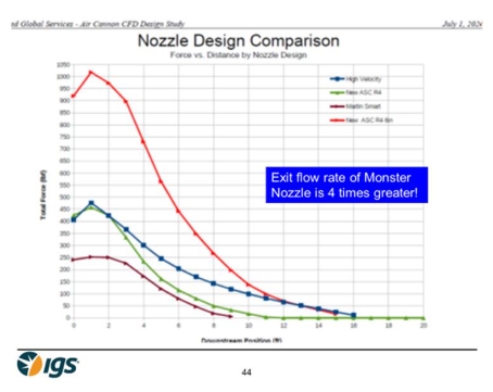 The is, however, a better way. Third-party CFD testing indicates that increasing the nozzle size from 4’’ to 6’’ produces 4x more peak force and far better air flow.